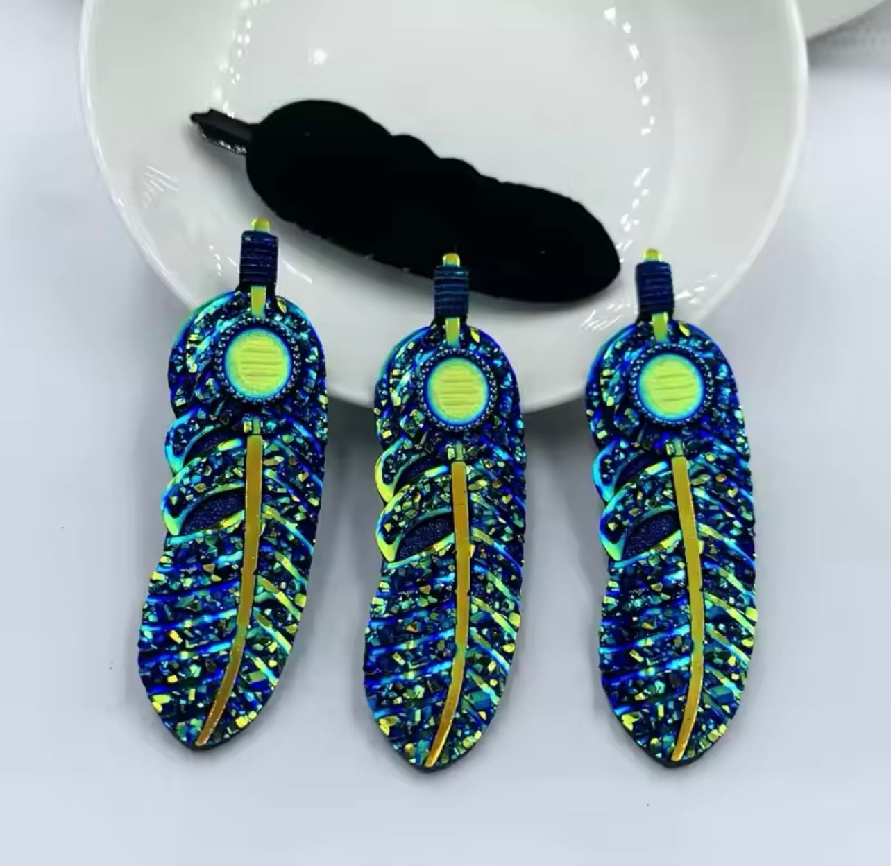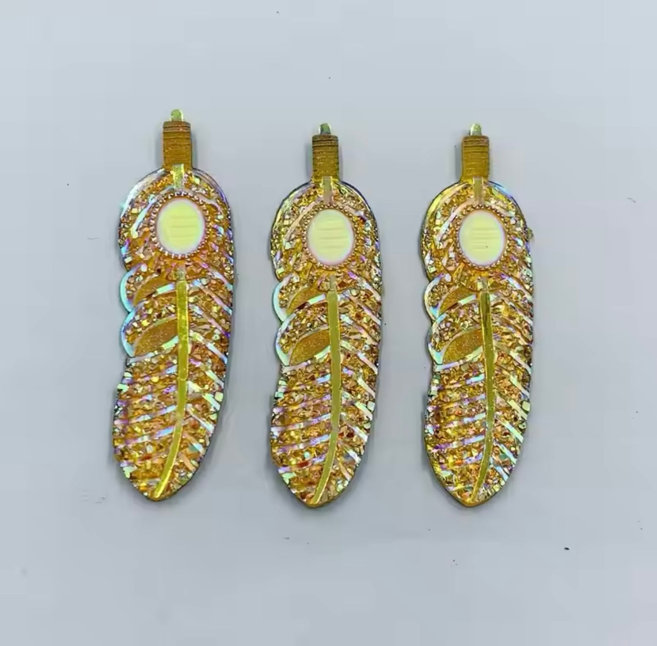 These 18x62 mm Feather AB Resin Rhinestone flatback gems combine elegant feather-inspired design with the brilliance of AB (Aurora Borealis) coating, offering a stunning iridescent effect. Crafted from durable resin, these flatback gems are perfect for expert crafters seeking to add a sophisticated sparkle to jewelry, accessories, or decorative projects. Their flatback design ensures easy application on various surfaces, making them ideal for precise embellishment work that demands both style and durability. Elevate your creations with these uniquely shaped, high-quality rhinestones.
